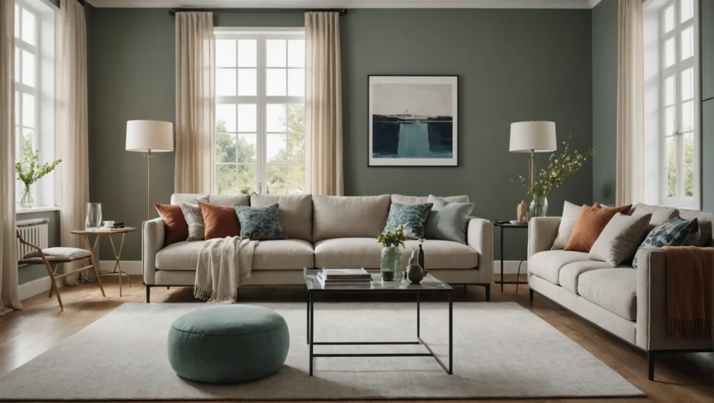 Pour un effet cocooning, optez pour des teintes douces et neutres comme le beige, le taupe ou le gris clair. Si vous souhaitez dynamiser une pièce, n’hésitez pas à ajouter des touches de couleur vive par petites touches, avec des accessoires ou un mur d’accent. Les couleurs peuvent aussi être utilisées pour agrandir visuellement une pièce : les teintes claires et froides ont tendance à repousser les murs, alors que les teintes foncées et chaudes les rapprochent.